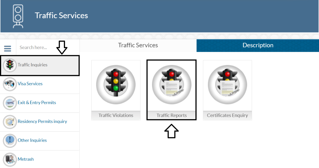 - Step 3: Click on “Traffic Reports” under the “Traffic Inquiries” section.